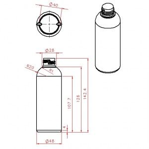 Флакон цилиндрической формы, объемом 200 мл, может комплектоваться дозатором, кнопочным распылителем или крышками флип-топ, диск-топ, глухим колпаком.