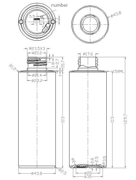 Пластиковый флакон цилиндрической формы, объемом 150 мл (смотреть всю линейку флаконов Д), может комплектоваться дозатором, кнопочным распылителем или крышками флип-топ, диск-топ.