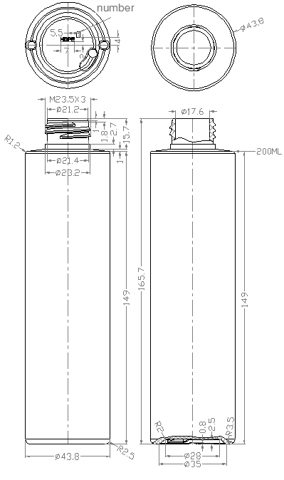 Пластиковый флакон цилиндрической формы, объемом 200 мл (смотреть всю линейку флаконов Д), может комплектоваться дозатором, кнопочным распылителем или крышками флип-топ, диск-топ.